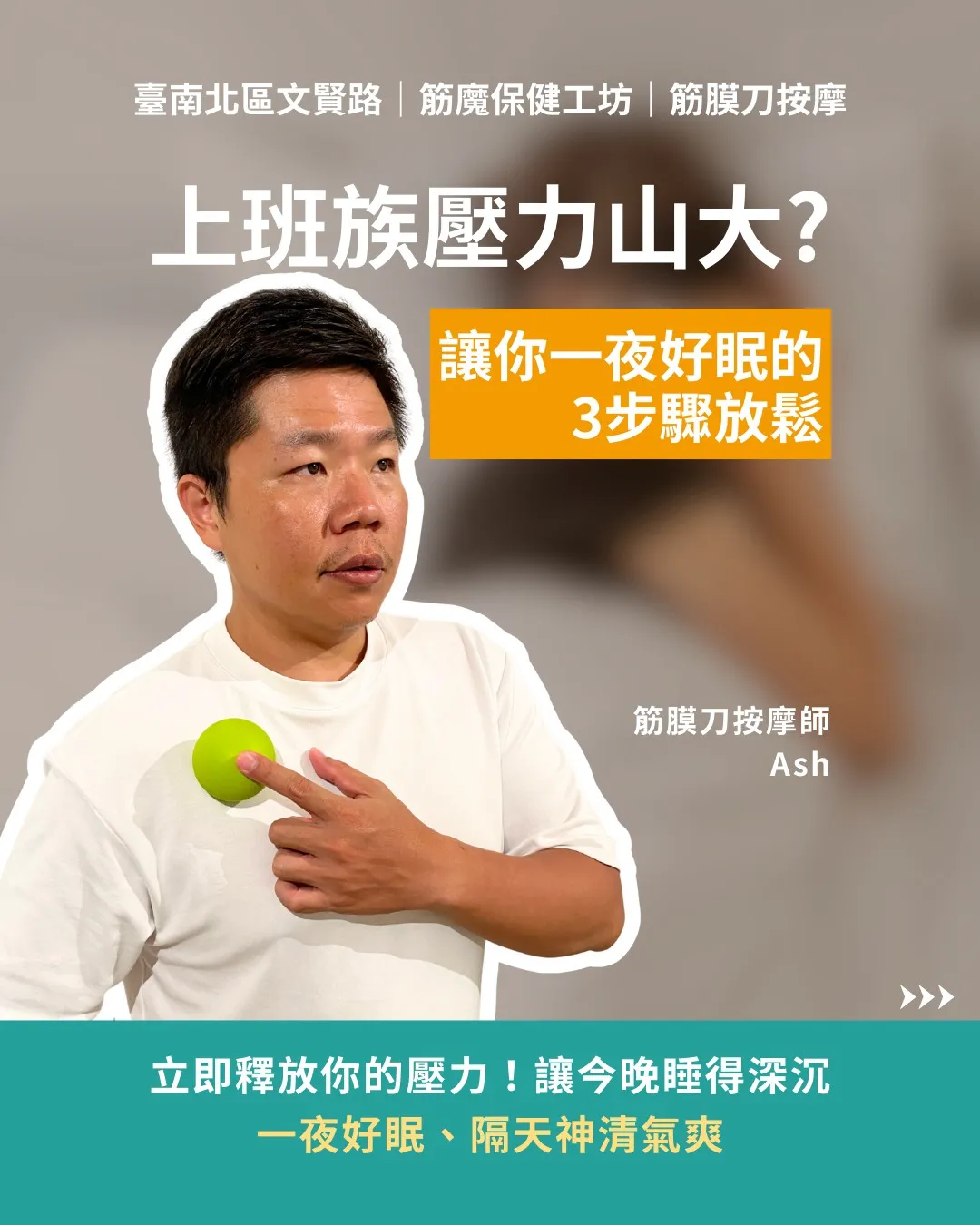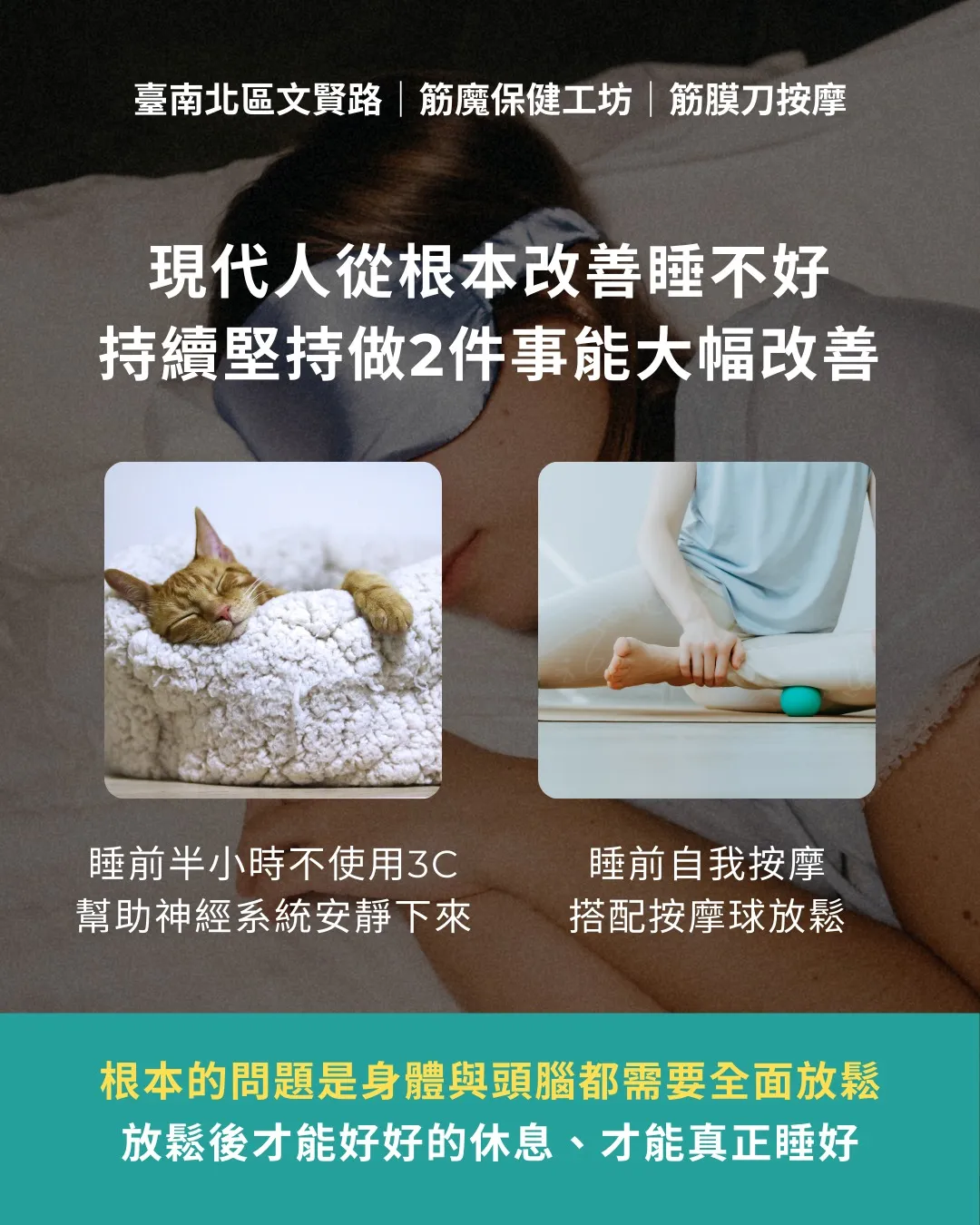 筋膜刀放鬆按摩能針對深層筋膜組織放鬆 包含肩頸放鬆、脊椎減壓,幫助身體進入真正的修復模式 當筋膜恢復彈性,睡眠自然深沉、醒來也更有精神!